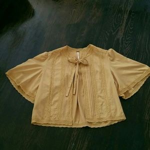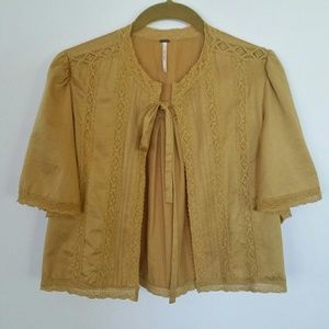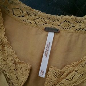 Free People. Tops. XS but it is very loose and fits small and medium as well. Front is open. As Good as NEW. Color is mustard yellow.
