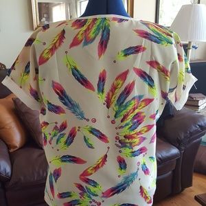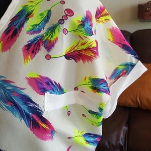 Korean Style slip over top. Bust 44" ans hips 45". Very cute. Reminds me of a hospital scrub top also. Bright and cute!!!