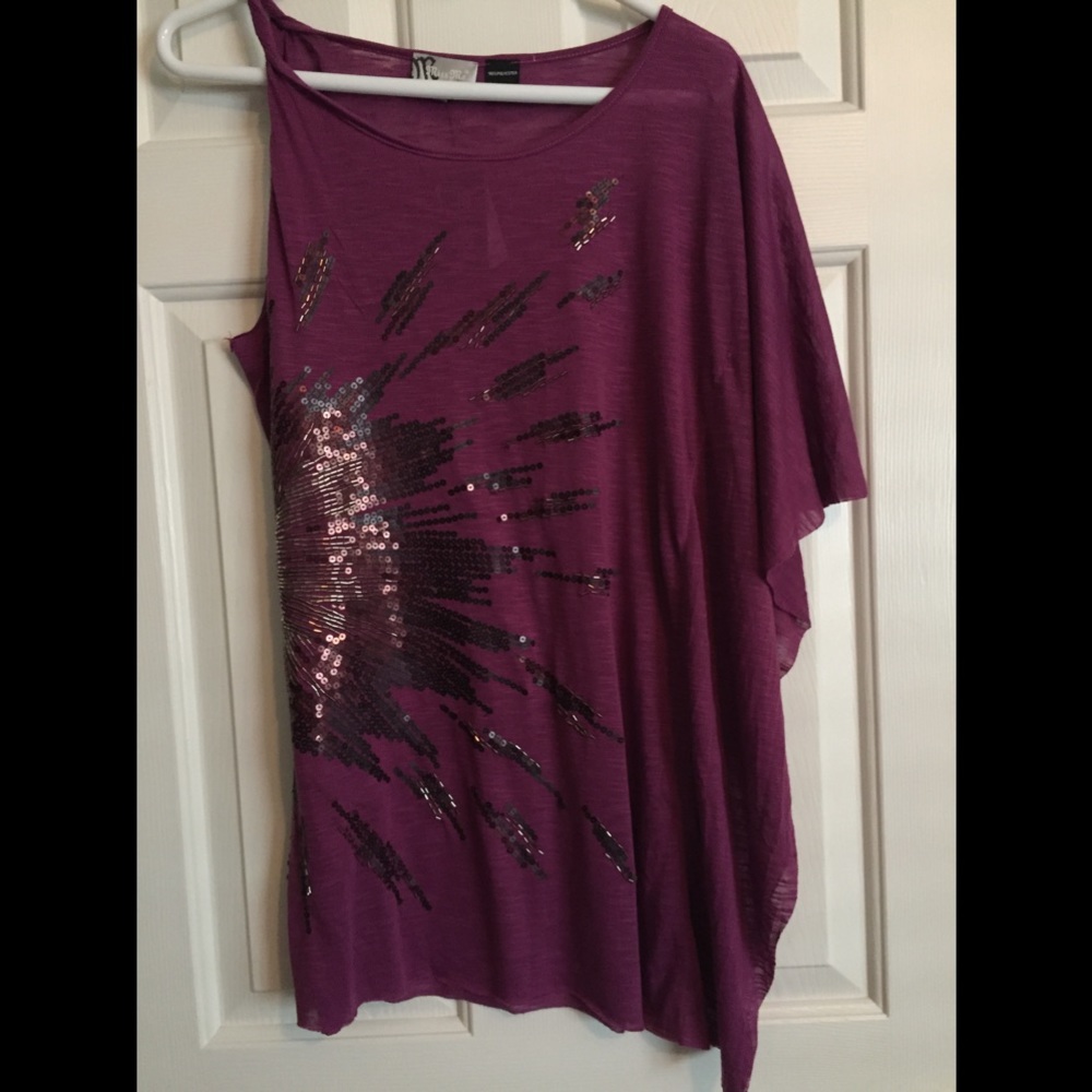 Plum top with One side sleeveless other flowey very figure flattering. Embellished with beads & sequins. New with tags