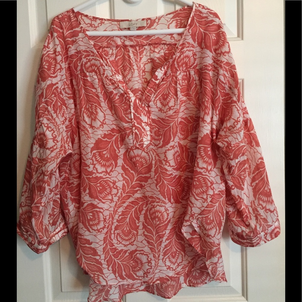 White and dark peach floral three quarter length sleeves, excellent condition.