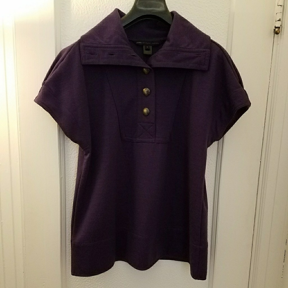 Signature Marc by Marc top, slightly a-line and cap sleeve details. Wool jersey and a rich eggplant purple