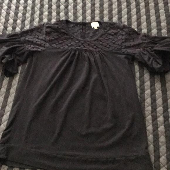 Super cute on ! Lace through the top with short bell sleeves . Loose through the body