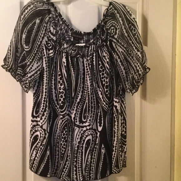 Black and white paisley short sleeve blouse