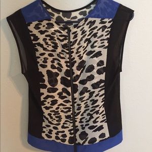 Sheer top. Requires tank underneath. Material is polyester. It feels silky on. It has a black zipper that runs down the back.