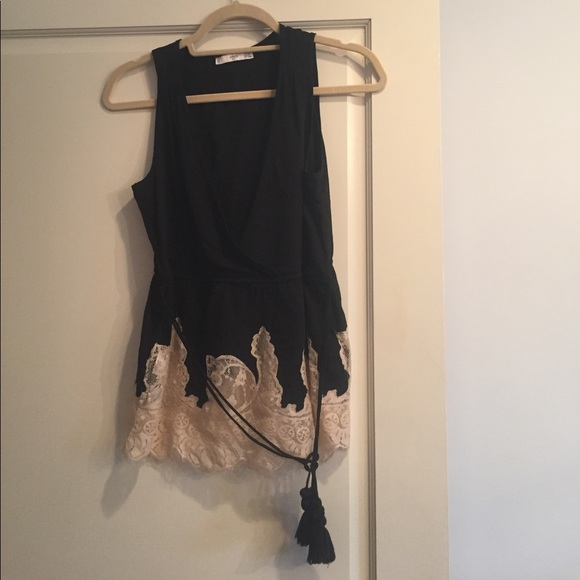 V neck ( low cut ) top with lace bottom and fringe tie
