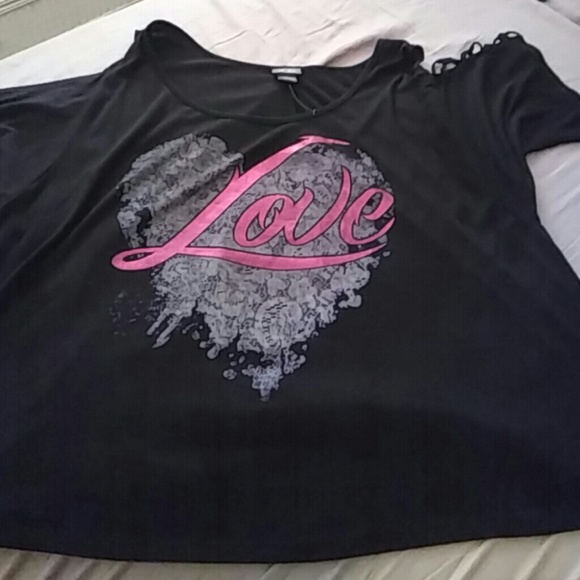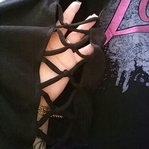 Black 3/4 sleeve top with detailed arms shown in picture two