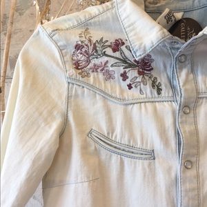 Washed denim top with flower embroidery. 100% cotton. Size XS from H&M