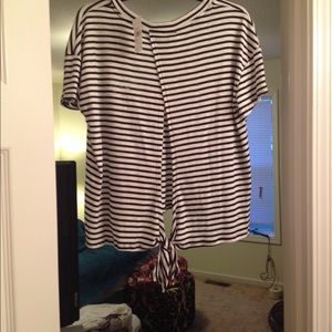 Short sleeve striped top with an open back that ties. Never worn!