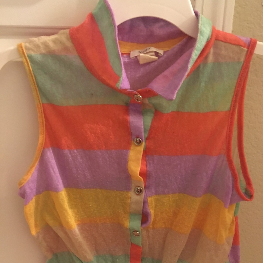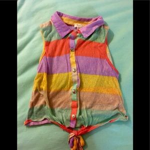 Super colorful, fun & cute top! Ties at the bottom which adds a fun look to it!!