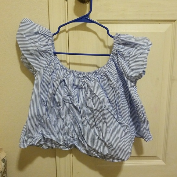 Shoulder top loose white and blue strips