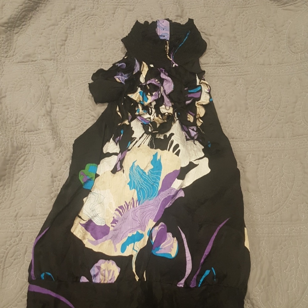 Gorgeous top by bebe. 100% silk. Worn maybe twice. Looks great both with jeans or slacks. Make me an offer, will work with the price
