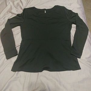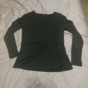 Long sleeved, clasp neck, pleated accent at waist and strechy