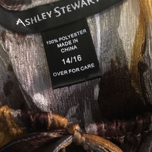 Brown and gold silkily like material with wide sleeves flare at the wrist.