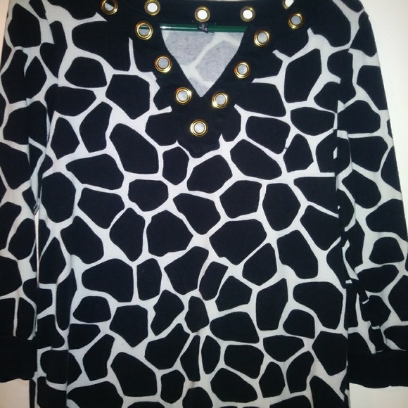 Black and white print, quarter length sleeves