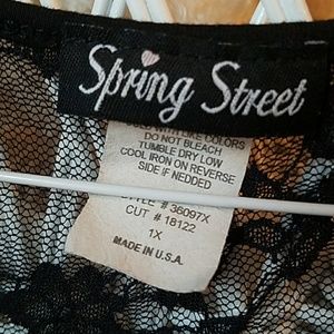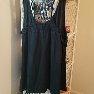 Black sleeveless tank with lace back. Suttle design on the front. Good length to wear with leggings.