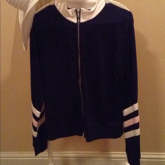 Navy blue zip up with white and pink stripes on sleeve❤️
