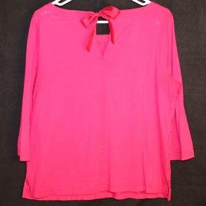 Fushia pink top with eyelet layer on front. Shorter length bodice, 3/4 length sleeve.