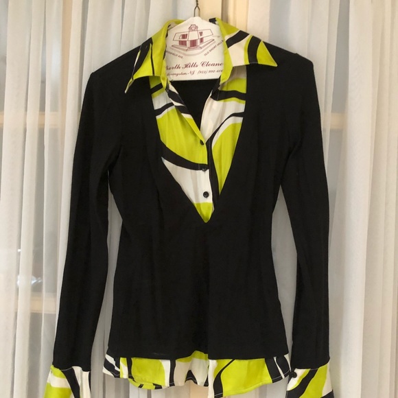 Green print with black overlay top. I always got compliments when I wore this. Trying to make space for new items.