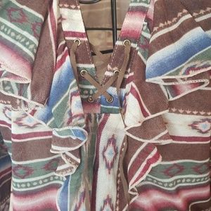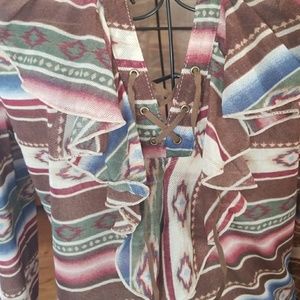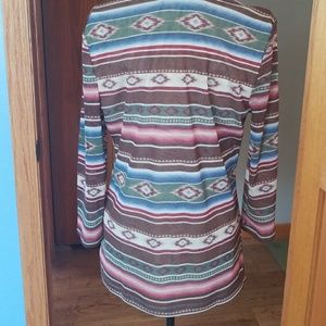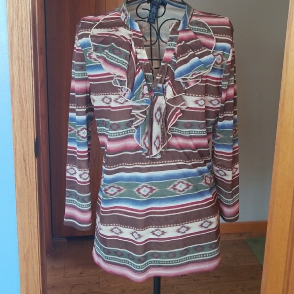 Chaps denim top..lace front..Aztec print...100% polyester...Never worn. Large. Not see through.. extra lining inside top. 3/4 sleeves