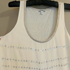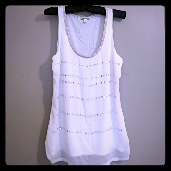 Good condition with a small mark on sleeve. Great for parties, fits true to size. Length goes a little past waist. Rinestones are in front.