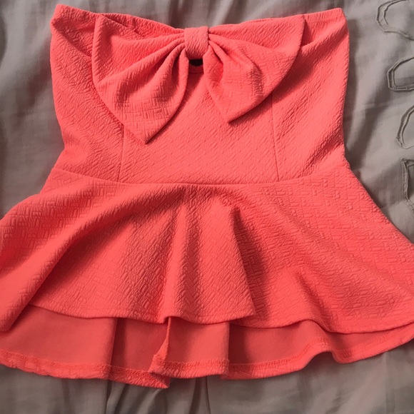 Strapless peplum top with bow 95% polyester 5% spandex never worn
