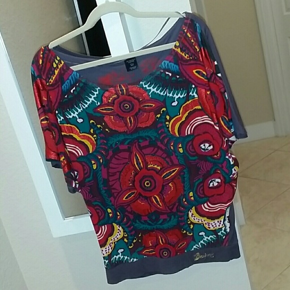 Butterfly Sleeve Top,Beautiful bold colors for Summer without tags/no signs of wear.Perfect Conditions like New! It doesn't have size tag,but I'm pretty sure it is a Small and runs big.