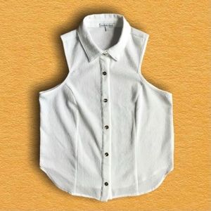 ▪️Description: Charlotte Russe off white curved bottom sleeveless button up with gold buttons