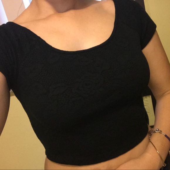 Black crop top. Perfect for summer/spring. It has a floral black print that I tired to capture in the next pictures (please scroll ) tags are off , but never worn.