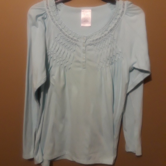 Turquoise top smocked on top with buttons. Size small with long sleeves. Another beautiful Liz Claiborne creation.