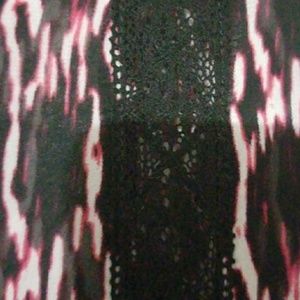 Red black,lace pattern down the front and on the sleeve worn about 4 times great condition