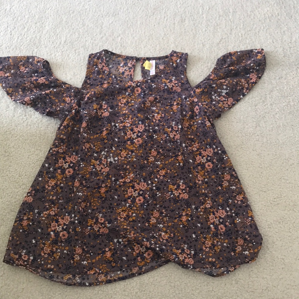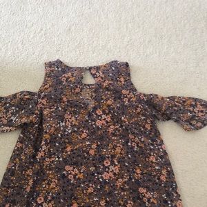 Floral purple top, off the shoulder with sleeves, perfect for work or casual wear