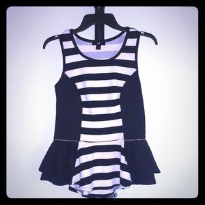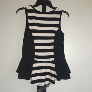 Black and white partially striped top.