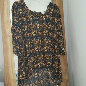 Navy floral boutique top. Great condition. High-low.One of the button loops on top/back is broken.
