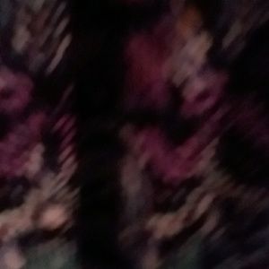 Long sleeved animal print multi-colored tell some purple some greys very nice with a buttonhole back with one button. Button-up sleeve in the small gold necklace detail in the front