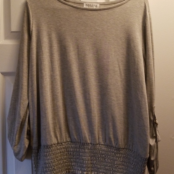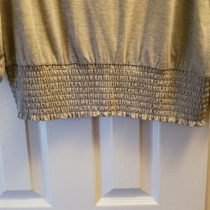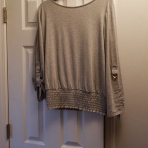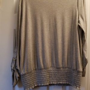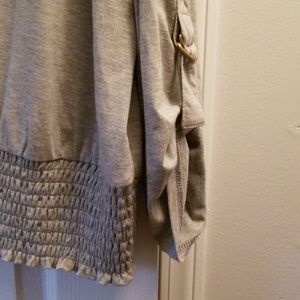 Quarter length sleeve with boat neck,elastic waist silver buckles on sleeves when sleeves are rolled down they become long sleeves