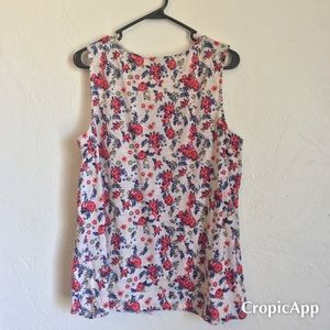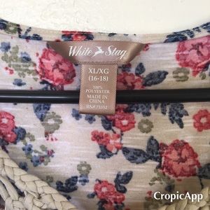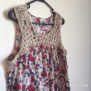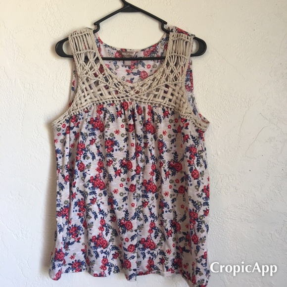 Beautiful top with knit detailing on the chest area. Now that spring and summer is coming you can wear this piece out. Can dress it th with shorts or pants however you may choose. It’s very comfortable and the fabric is soft.