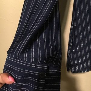Navy blue with shiny silver pin stripe!!! Very cute Vintage
