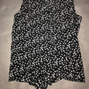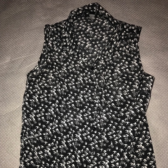 Bird print black and white button shirt