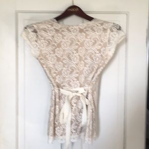 Beige and lace top. Wear alone, or over a tank to dress it up :)