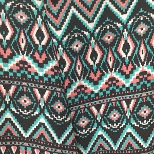 V-neck light weight sleeveless top. Great for hot summer days or evenings. Cross overs in the front and the back is slightly longer. Multi color- corals, greens and black
