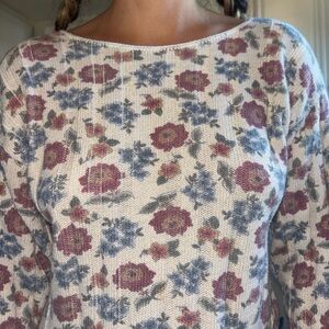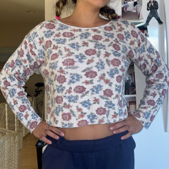 Floral print boho knitted ribbed vintage crop top sweater really cute bohemian festival cottagecore fairycore mcbling 80s knit sweater 90s y2k mcbling 2000s