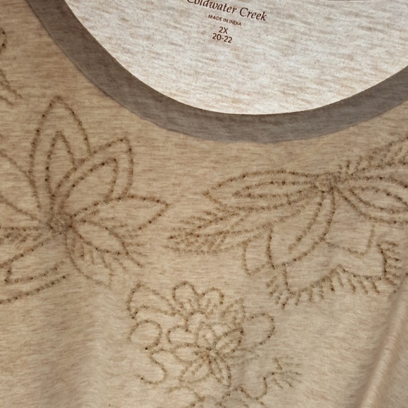 Coldwater Creek pullover top. Size 2X. Color is oatmeal with tiny stitching and beads to form flowers. Tone on tone