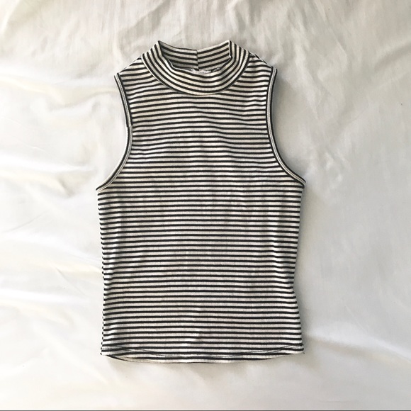 A cute striped black and white top. It is stretchy and slightly cropped. Size is small!