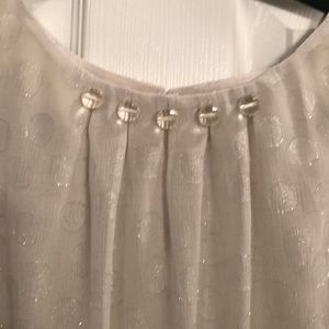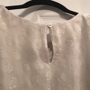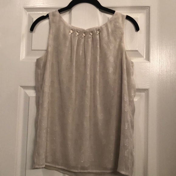 Perfect top for under a suit jacket or alone with a cute pair of pants. Worn once - EUC. Cream color with shimmery threads in it. Also lined.