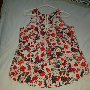 Sleeveless blue red and white floral pattern rose gold zipper hi low shirt