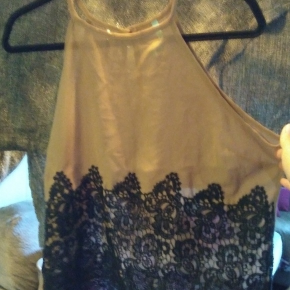 Spaghetti strap top with black embellishments