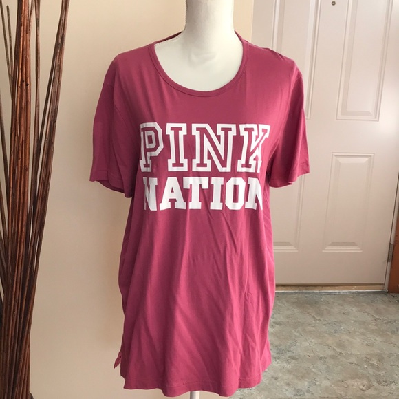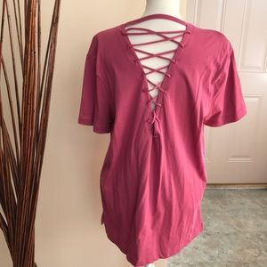 Pink nation short sleeve T- Shirt with lace up detail in the back. NWOT 100% cotton