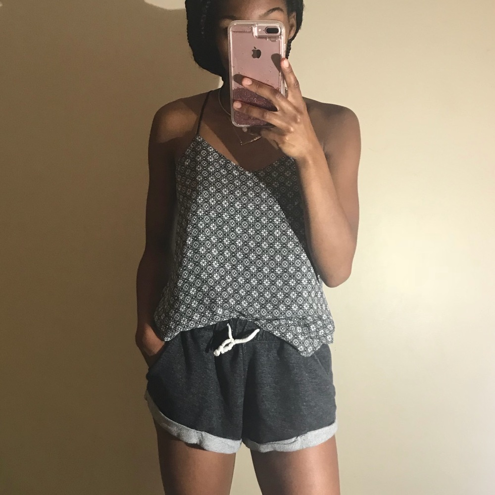 STRUCTURED tank top. Has minor rip in V section but it’s not very noticeable in my eyes.