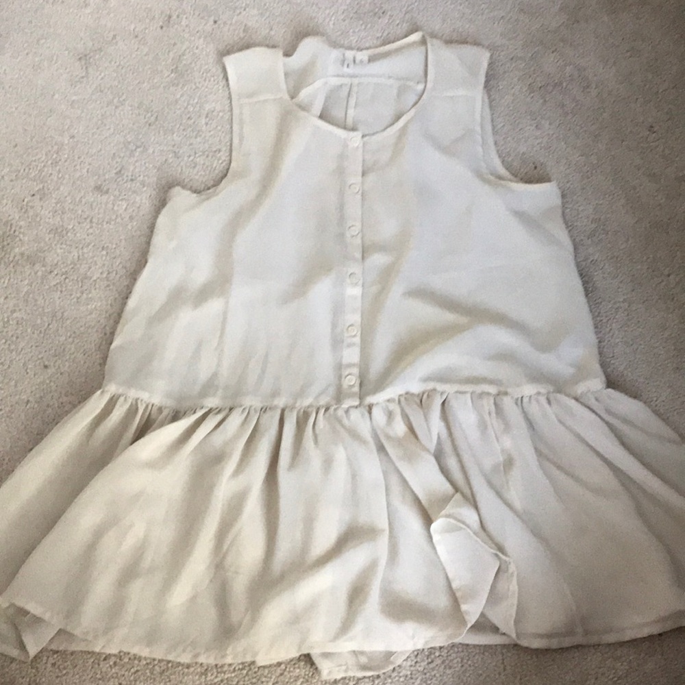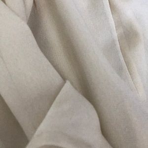 Cream top with gold strands woven in. Long. Would keep but is too small. Open to offers.