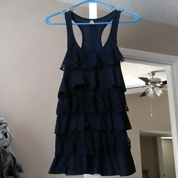 Navy blune tank top with solid and lace ruffles. Size medium
